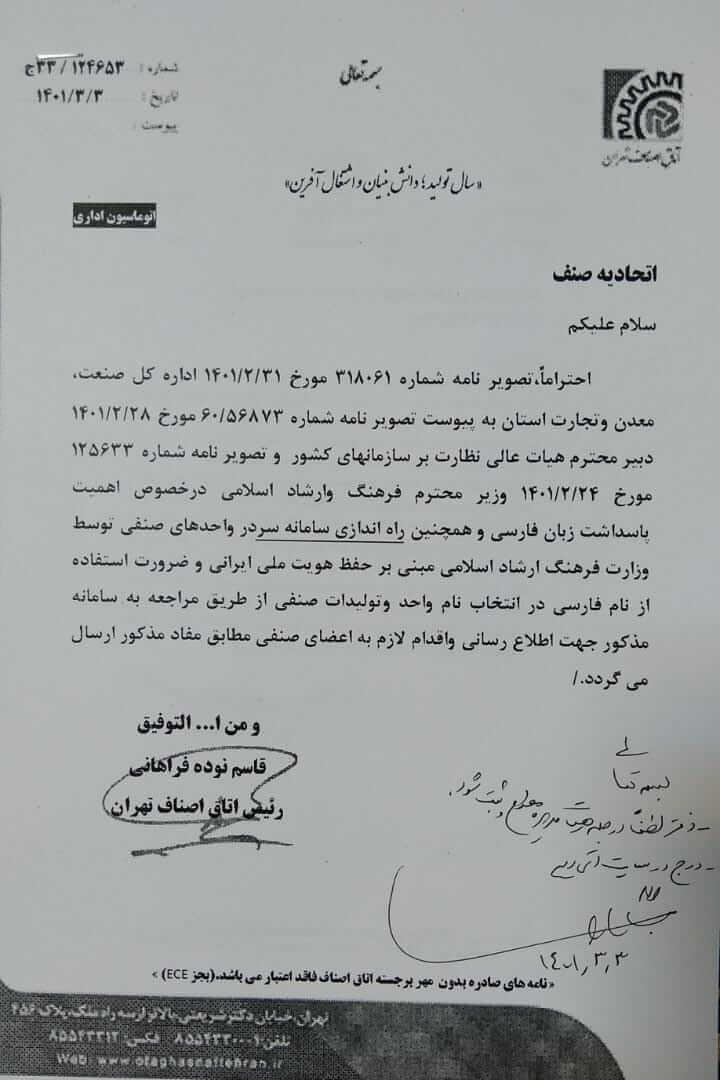 اطلاعیه و بخشنامه ها بخشنامه اهمیت پاسداشت زبان فارسی جلسه بررسی وضعیت تامین و عرضه کالاهای اساسی در سطح بازار بخشنامه اجرای دقیق طرح اخذ QR